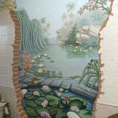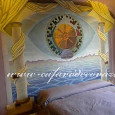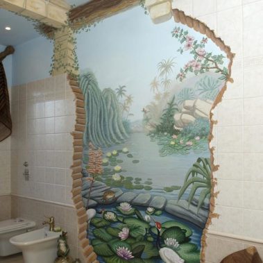 La realizzazione del dipinto trompe l’oeil viene effettuata a mano su commissione e il soggetto è a scelta del cliente, si può riprodurre un’immagine, una fotografia fornita dal cliente, oppure lasciare libero sfogo alla creatività e sensibilità dell’artista.
